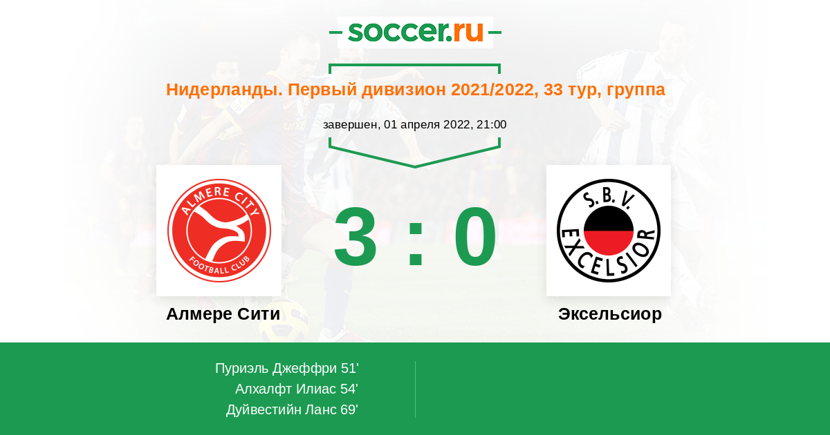 51' (1:0) Пуриэль Джеффри (32) (Дуйвестийн Ланс (10))