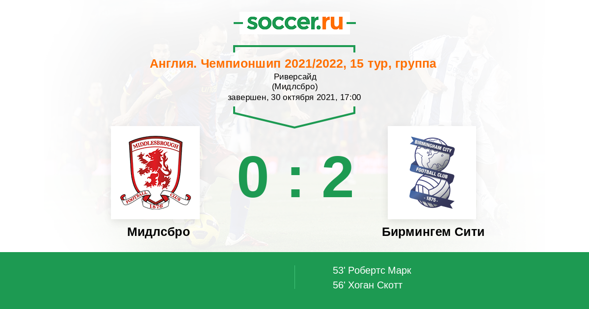 53' (0:1) Робертс Марк (4) (Грэм Джордан (24))