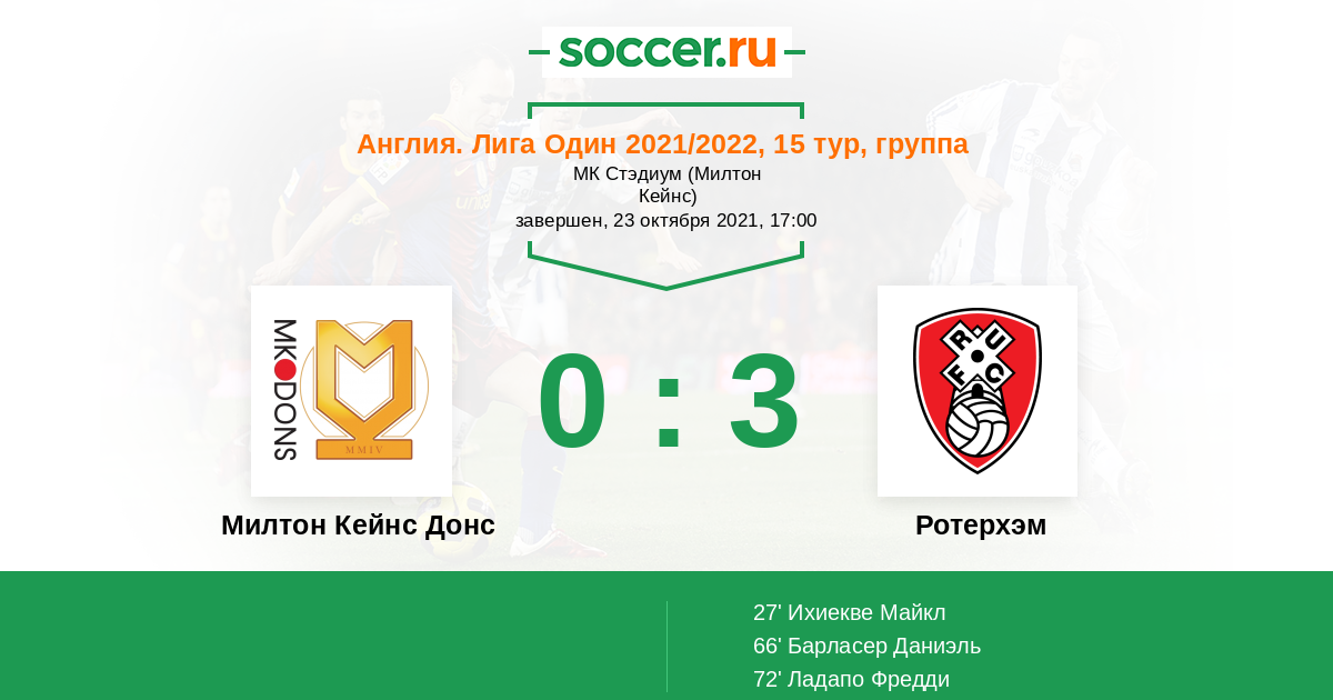 72' (0:3) Ладапо Фредди (10) (Миллер Микел (14))