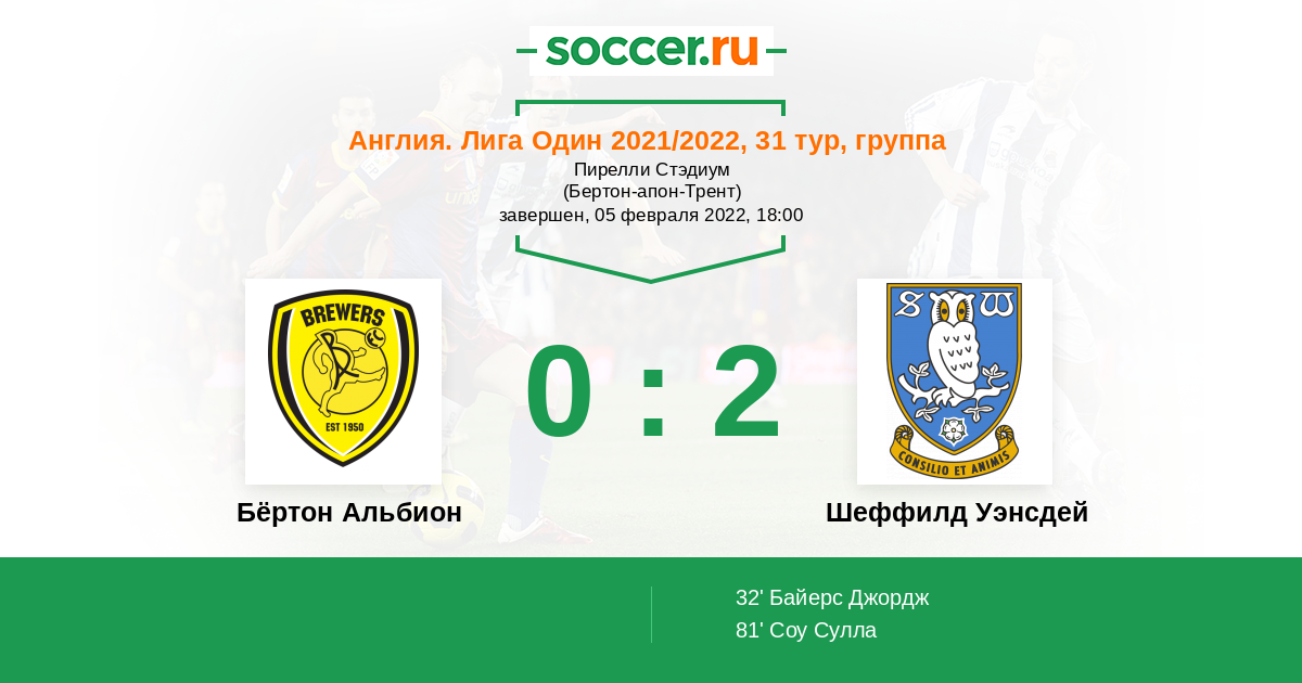 Бёртон Альбион - Шеффилд Уэнсдей
