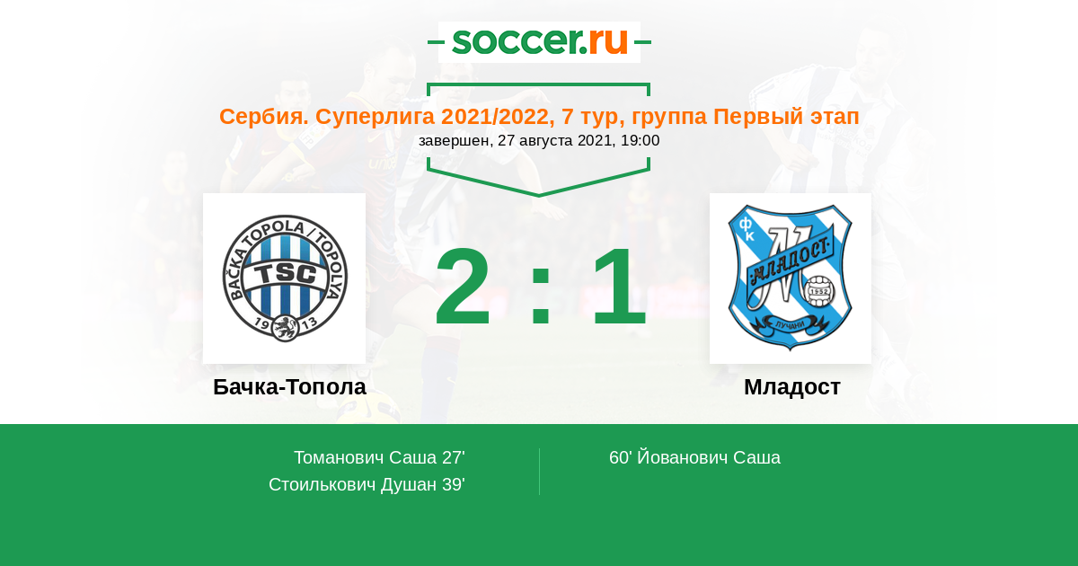 27' (1:0) Томанович Саша (6)
