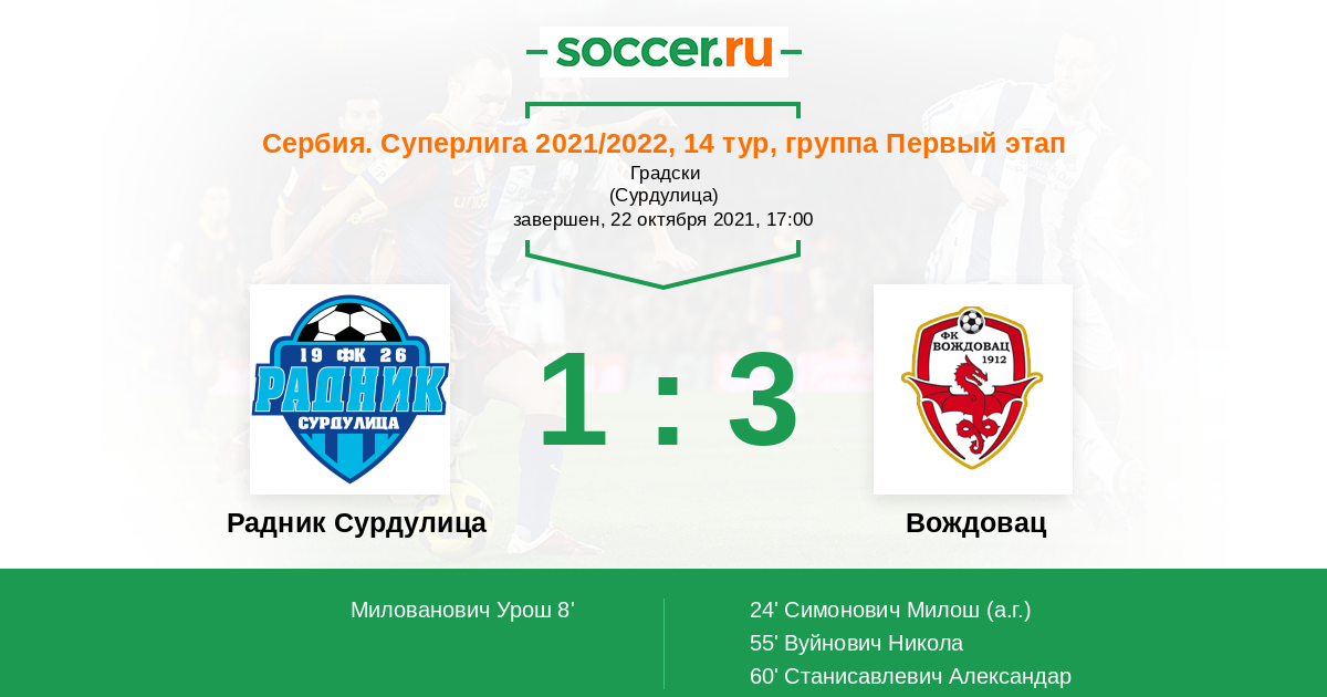 Запасные: 6 Станисавлевич Филип (с 63'), 27 Кейта Секу (с 63'), 9 Стойчев Милош (с 80'), 21 Айдинович Эдин (с 80+1'), 24 Милоевич Неманья (с 89'), 3 Богданович Александр, 11 Перосевич Драган, 15 Мияйлович Марко, 20 Цветкович Ненад, 26 Яракович Стефан, 31 Крунич Милош