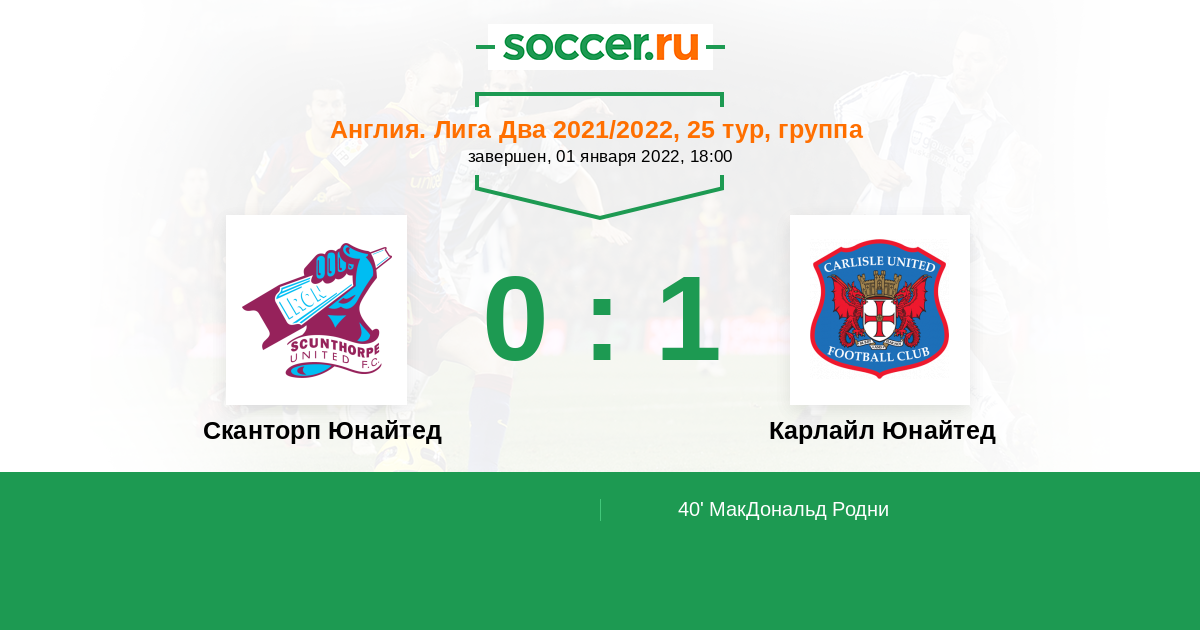 40' (0:1) МакДональд Родни (5) (Гай Каллум (8))