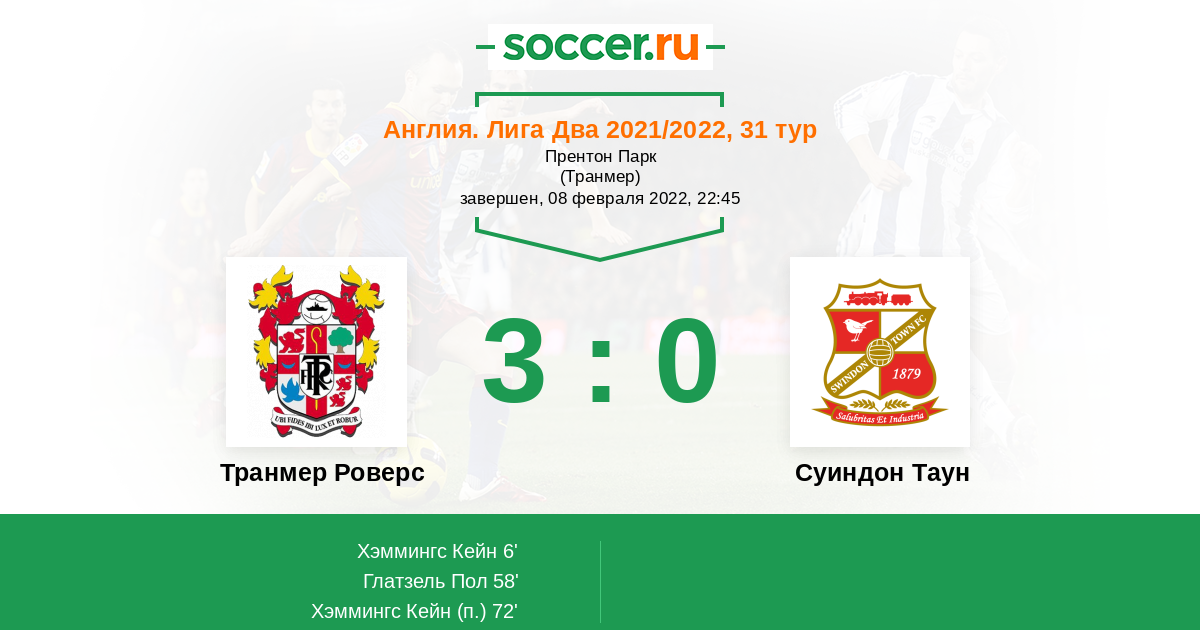 6' (1:0) Хэммингс Кейн (10) (Глатзель Пол (16))