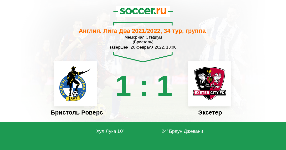 10' (1:0) Хул Лука (30) (Эванс Энтони (21))