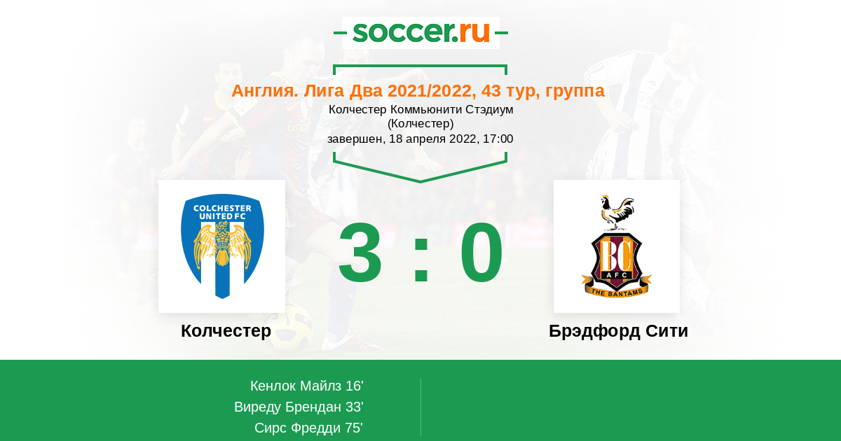 75' (3:0) Сирс Фредди (11) (Виреду Брендан (6))