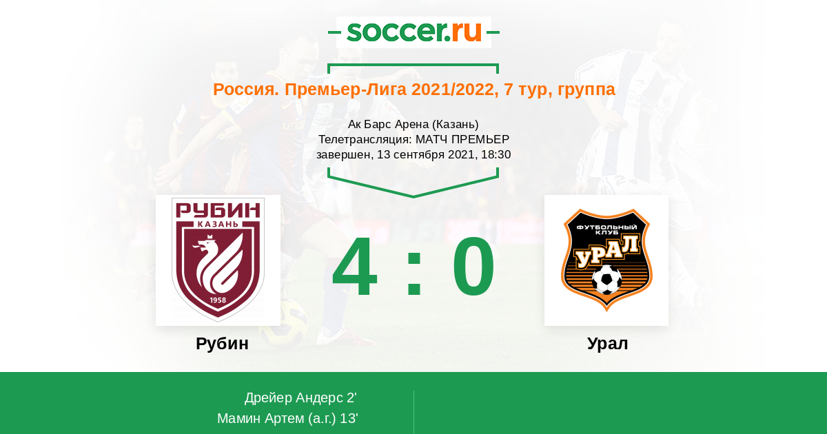 13' (2:0) Автогол Мамин Артем (29)