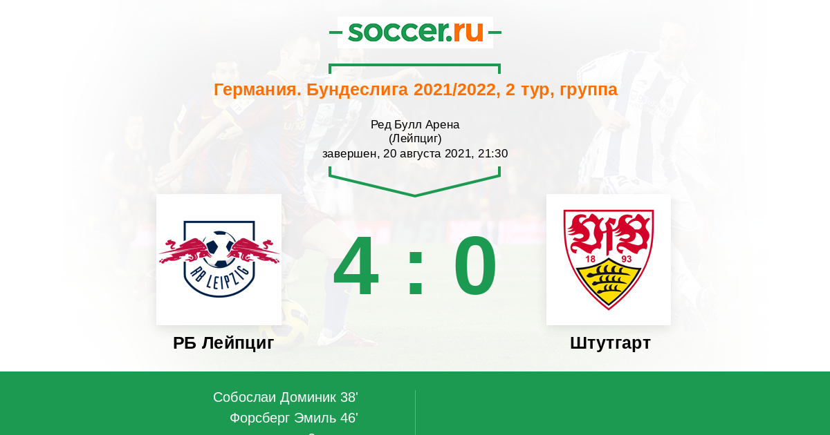 Лейпциг неудачно стартовал в Бундеслиге, проиграв первый матч сезона. Этот факт должен быть отличной мотивацией добыть победу в пятницу. Линия атаки у Лейпцига впечатляет, более того, летом был приобретен нападающий Андре Сильва, которому принадлежит второе место прошлого сезона по результативности. Пора ему отличиться за новую команду.