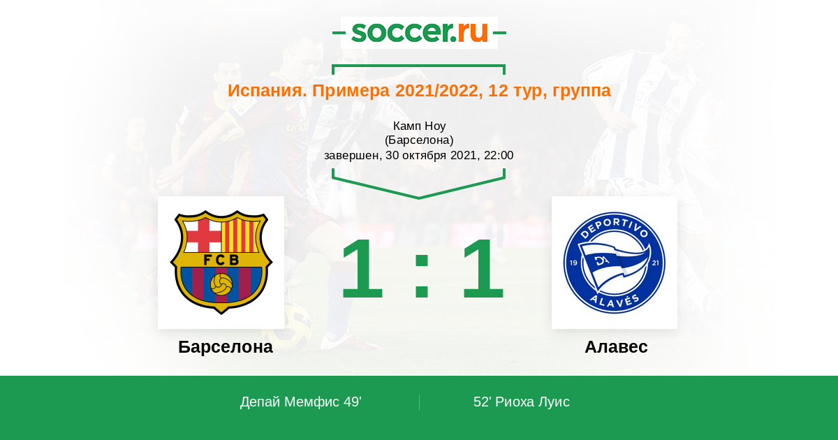 52' (1:1) Риоха Луис (11) (Хоселу (9))
