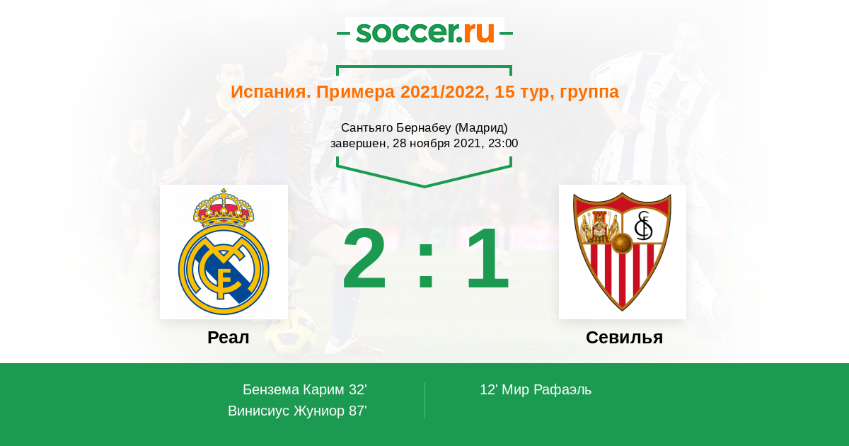 Запасные: 26 Лопес Луис, 13 Лунин Андрей, 5 Вальехо Хесус, 12 Марсело, 6 Начо (с 90+2'), 27 Бланко Антонио, 22 Иско, 15 Вальверде Федерико (с 73'), 25 Камавинга Эдуардо (с 73'), 17 Васкес Лукас (с 90+4'), 16 Йович Лука, 24 Диас Мариано