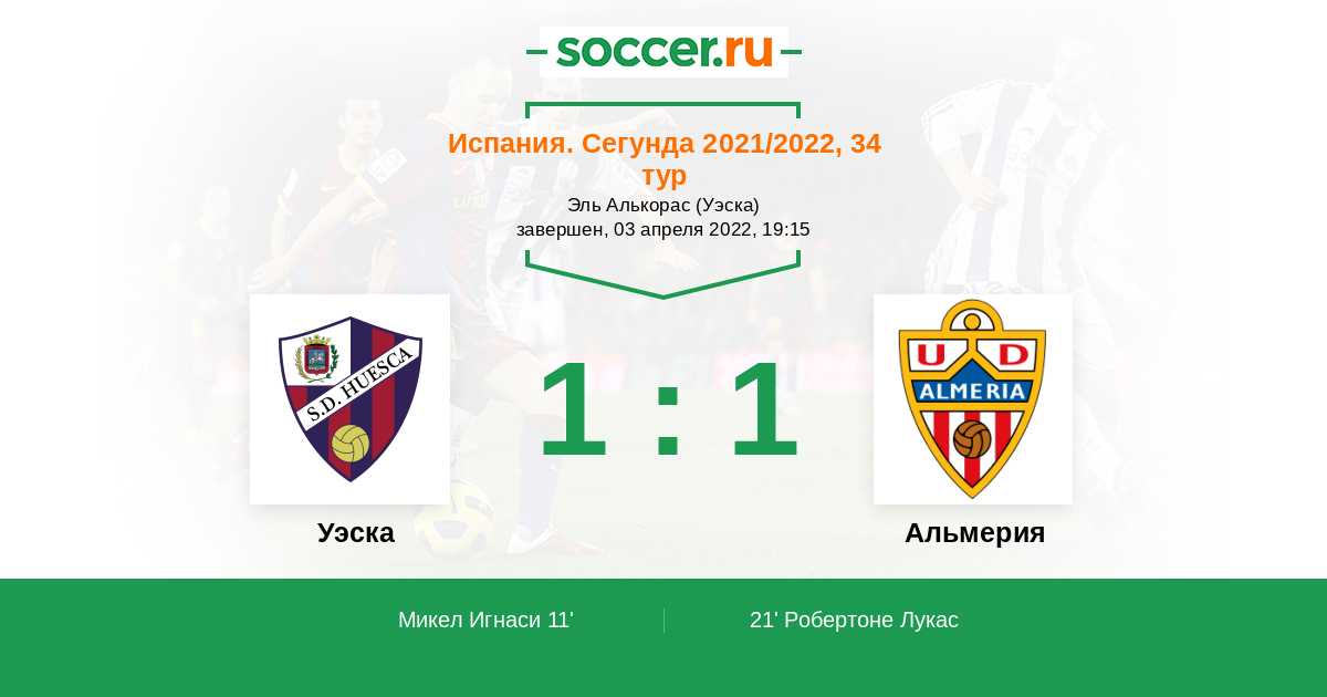 21' (1:1) Робертоне Лукас (5) (Портильо Франциско (8))