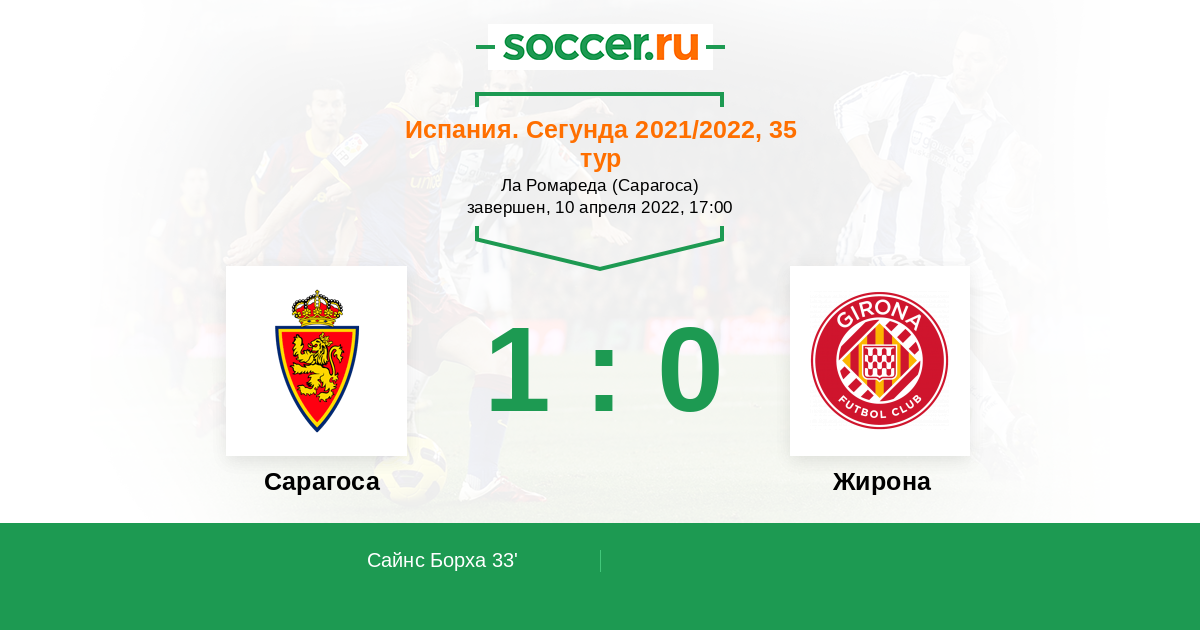 33' (1:0) Сайнс Борха (26) (Франсес Алехандро (6))