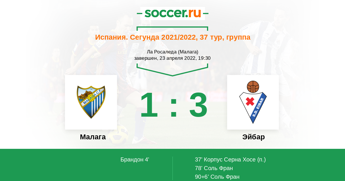 90+6' (1:3) Соль Фран (9) (Техеро Альваро (15))