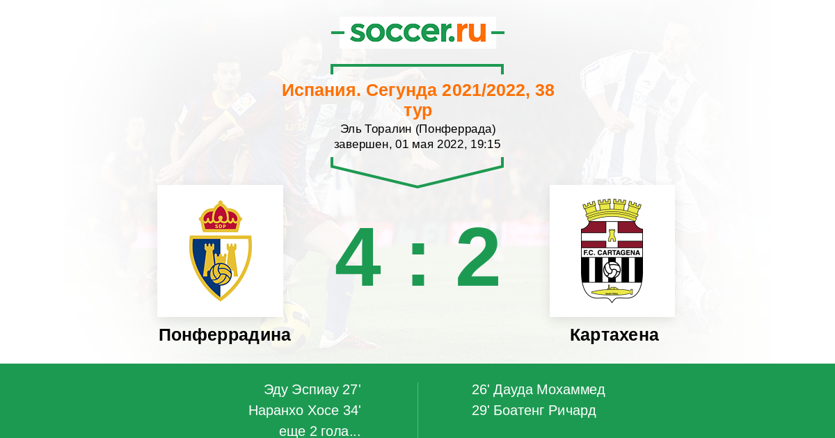 27' (1:1) Эду Эспиау (19) (Рио Рейн Хосе Антонио (3))