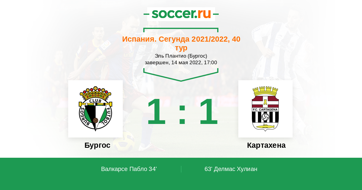 34' (1:0) Валкарсе Пабло (8) (Гильермо Фернандес (9))