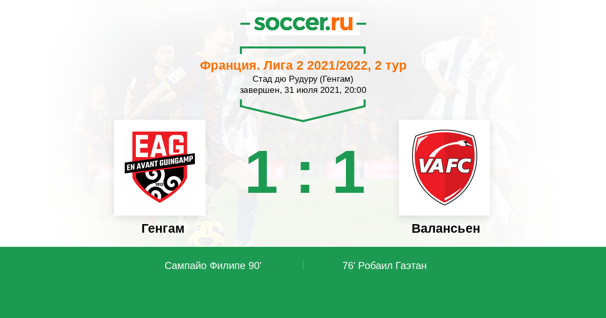 76' (0:1) Робаил Гаэтан (9) (Массон Жюльен (6))
