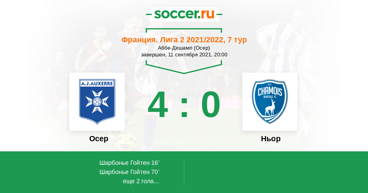 16' (1:0) Шарбонье Гойтен (19) (Хейн Готье (7))