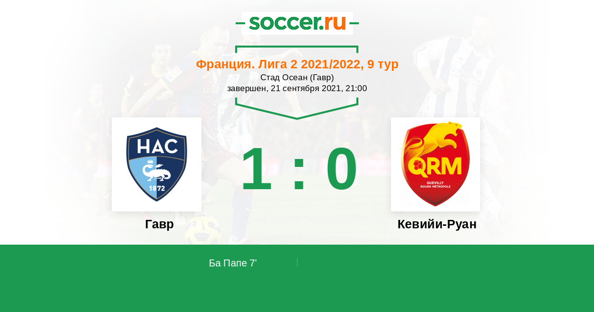 7' (1:0) Ба Папе (25) (Алиуи Набиль (10))