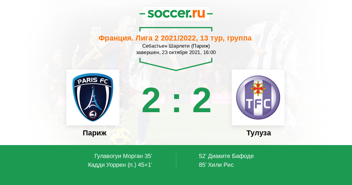 52' (2:1) Диаките Бафоде (19) (Хили Рис (9))