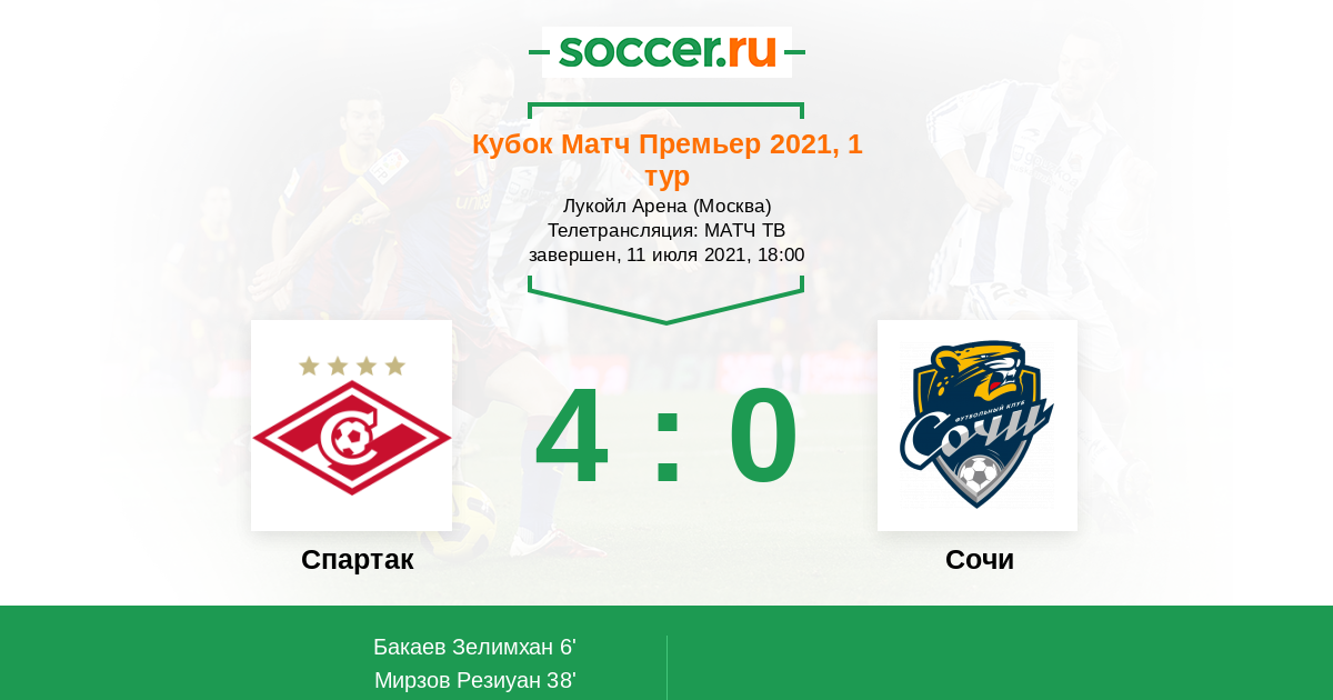 Запасные: 32 Ребров Артем (с 46'), 57 Селихов Александр, 38 Ещенко Андрей, 29 Кутепов Илья (с 46'), 14 Джикия Георгий (с 67'), 47 Зобнин Роман (с 67'), 8 Мозес Виктор (с 46'), 40 Тимофеев Артем, 17 Ломовицкий Александр, 15 Глушенков Максим (с 67'), 7 Соболев Александр (с 46'), 99 Роша Педро