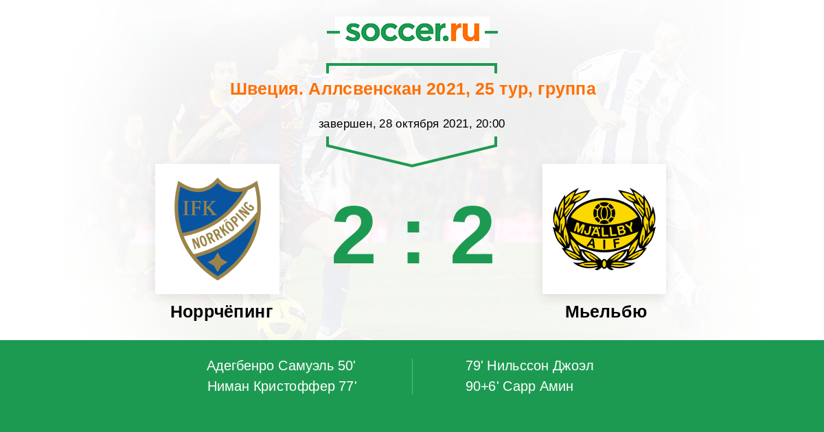 90+6' (2:2) Сарр Амин (11) (Андерссон Элиас (96))