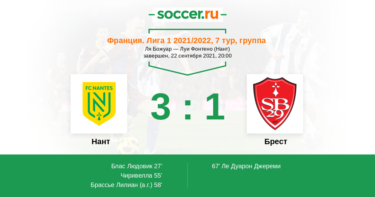 55' (2:0) Чиривелла (5) (Коршья Себастьен (24))