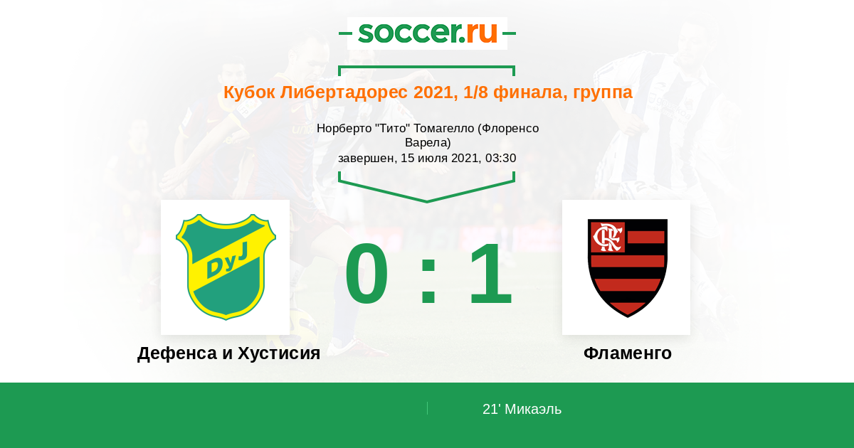 21' (0:1) Микаэль (19) (Густаво Энрике (2))
