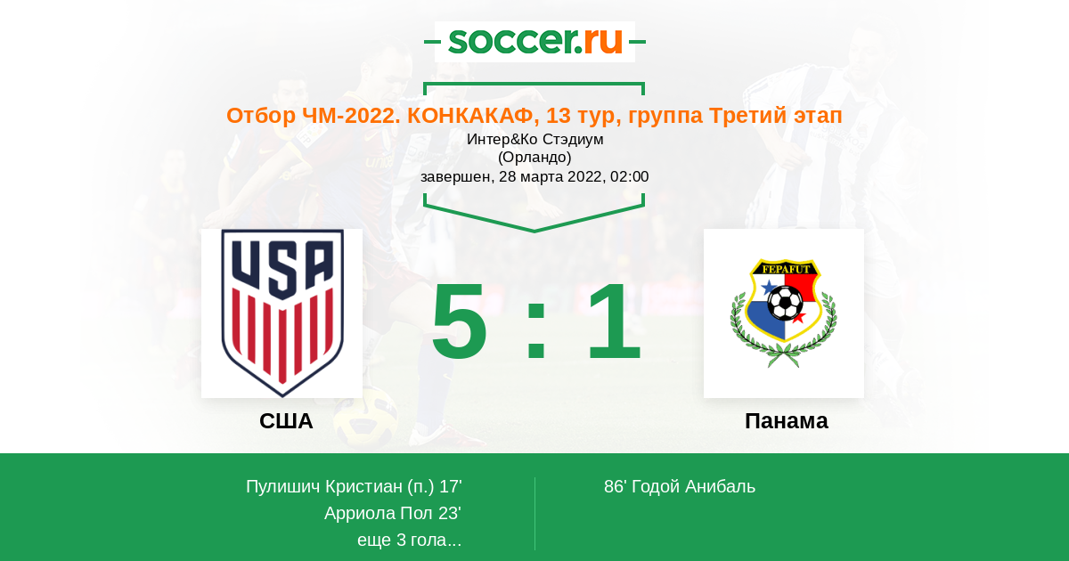 Несколько дней тому назад панамцы на своем поле не смогли обыграть откровенно слабых гондурасцев. Из-за этой осечки они потеряли четвертую строчку. Вне родных стен Панама проиграла четыре матча из шести. Победа США.
