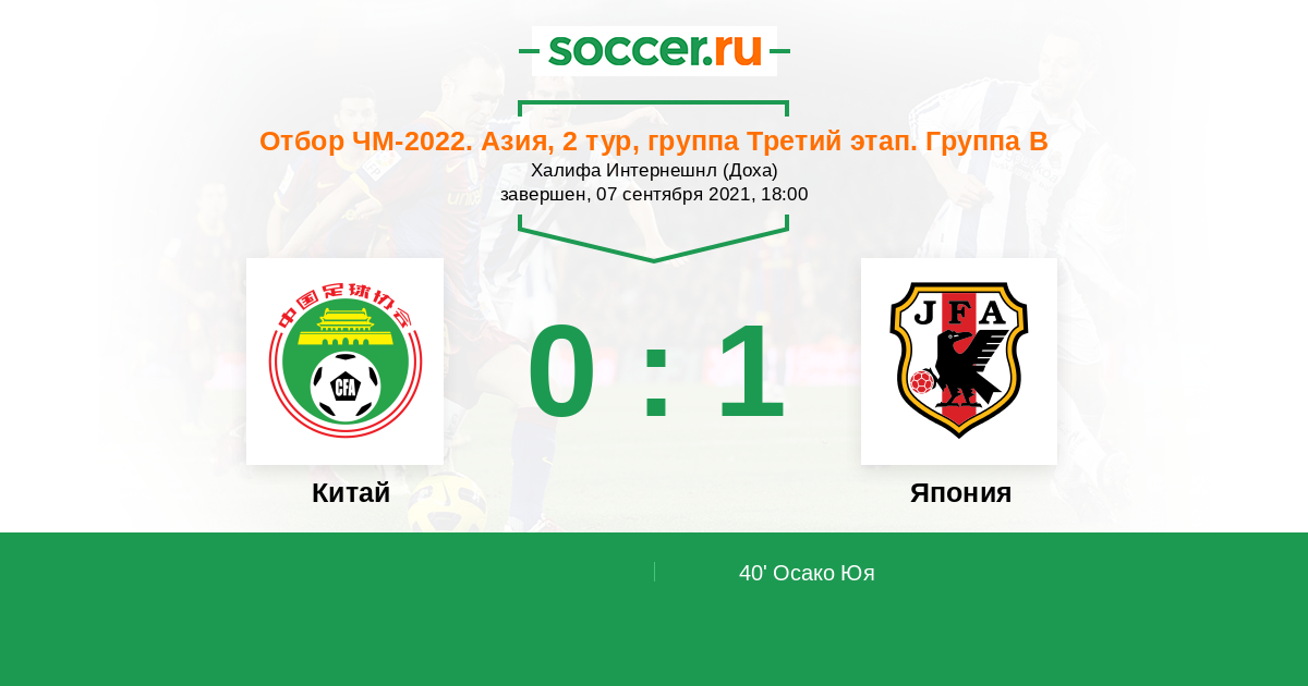 40' (0:1) Осако Юя (15) (Ито Джуня (14))