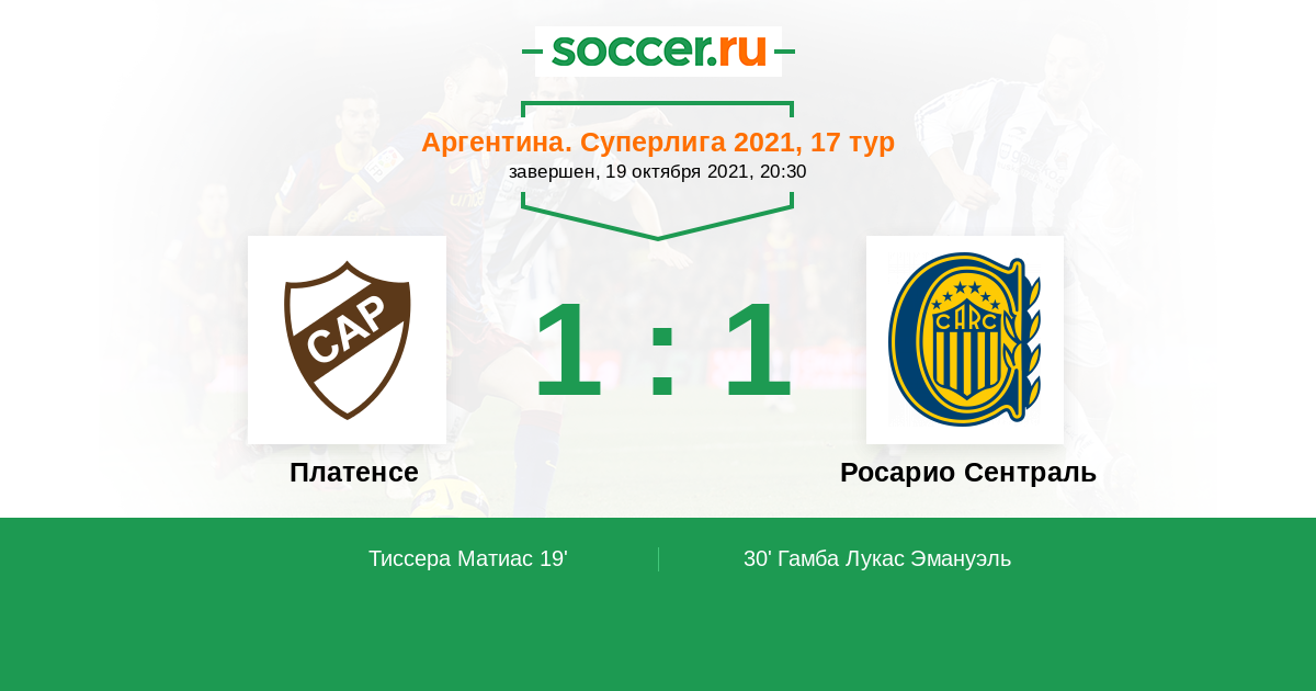 30' (1:1) Гамба Лукас Эмануэль (Охеда Педро (25))