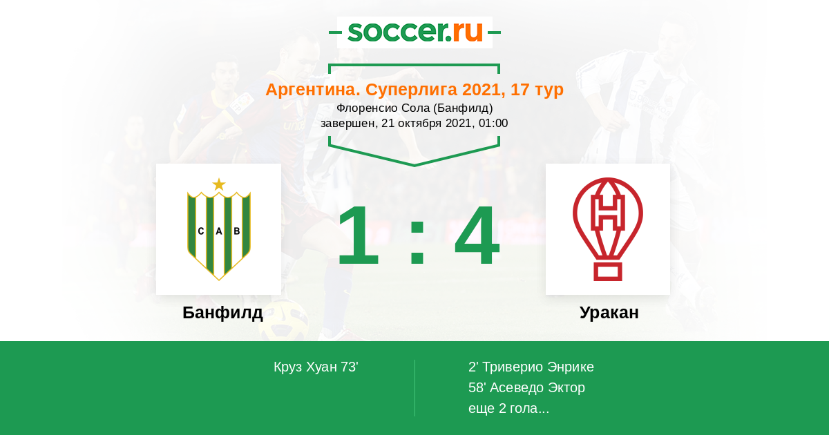 2' (0:1) Триверио Энрике (9) (Асеведо Эктор (11))