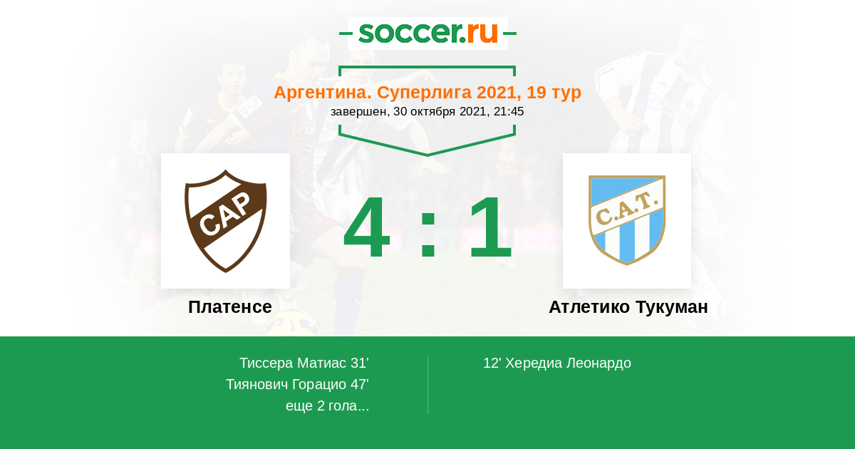 31' (1:1) Тиссера Матиас (7) (Бертоло Николас (35))