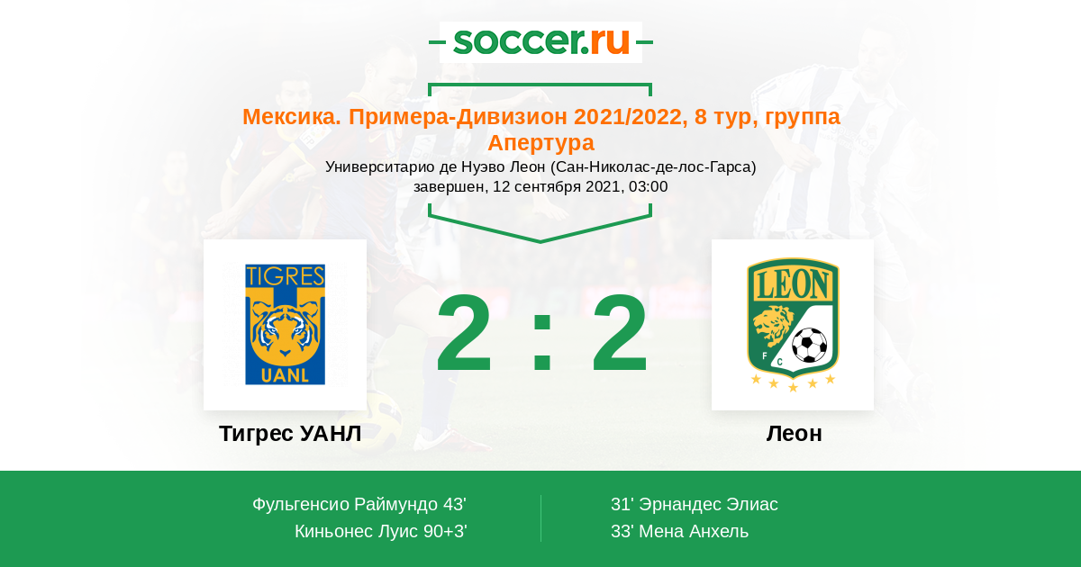 43' (1:2) Фульгенсио Раймундо (22) (Киньонес Луис (23))