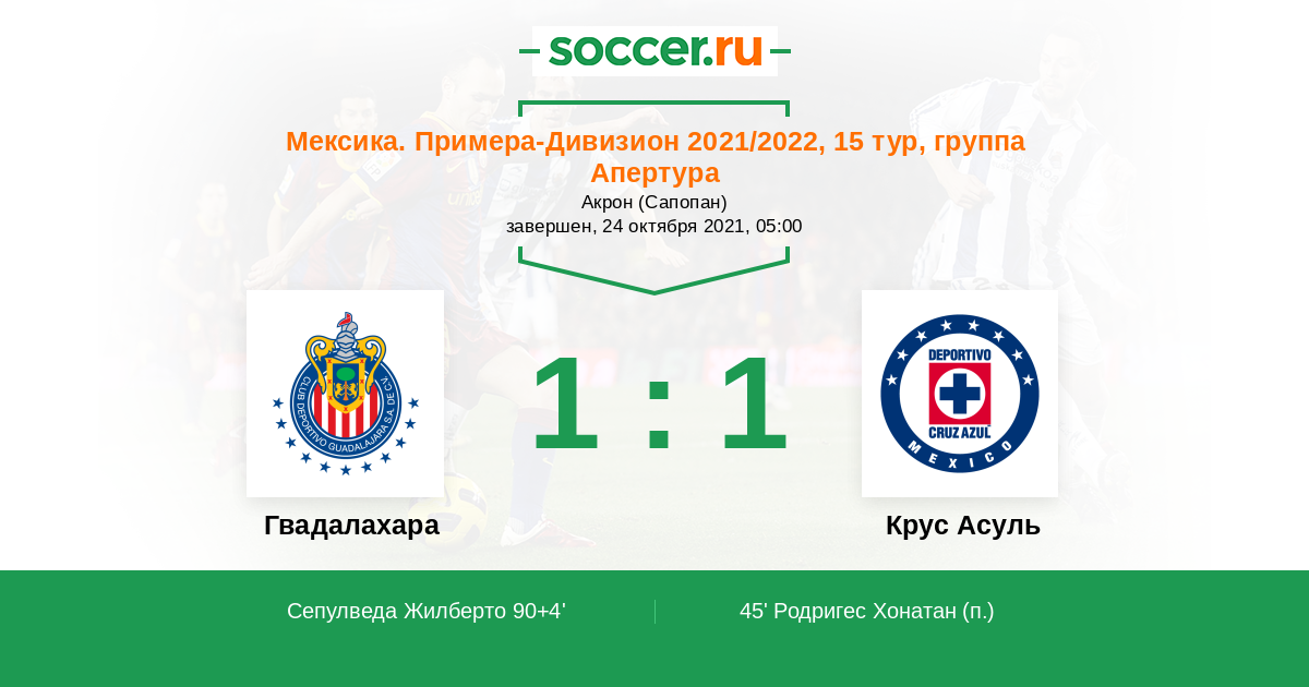 90+4' (1:1) Сепулведа Жилберто (3) (Киснерос Карлос (33))