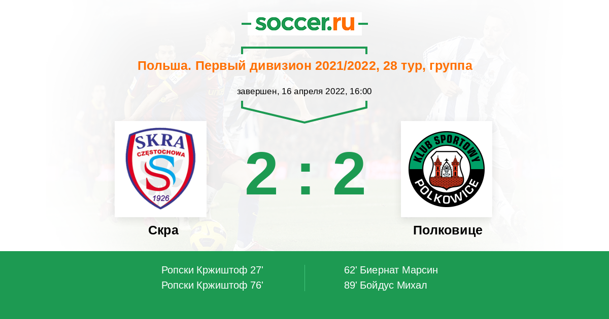 Запасные: Недбала Давид (с 70'), Сайдак Пржемислав (с 70'), Напора Кшиштоф (с 85'), Брусило Рафал (с 90+6'), Малеч Матеуш, Посмик Милан, Суецки Никодем, Ноцонь Пётр