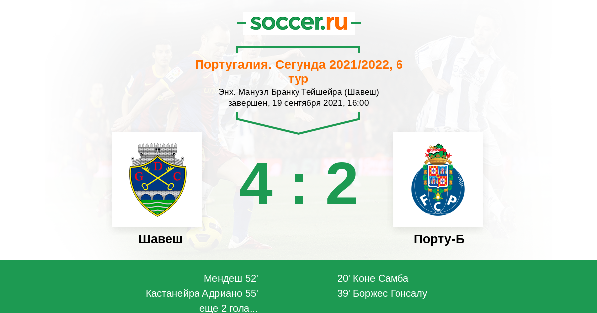 Запасные: 67 Соуза Васко (с 70'), 87 Фолья Бернарду (с 70'), 44 Антони Ромейн Корреа (с 85'), 76 Абреу Диого (с 85'), 77 Пеглоу Жоао (с 85'), 61 Иван Кардосо, 82 Рессурейсао Диого, 95 Леонардо Боргес, 83 Уэсли