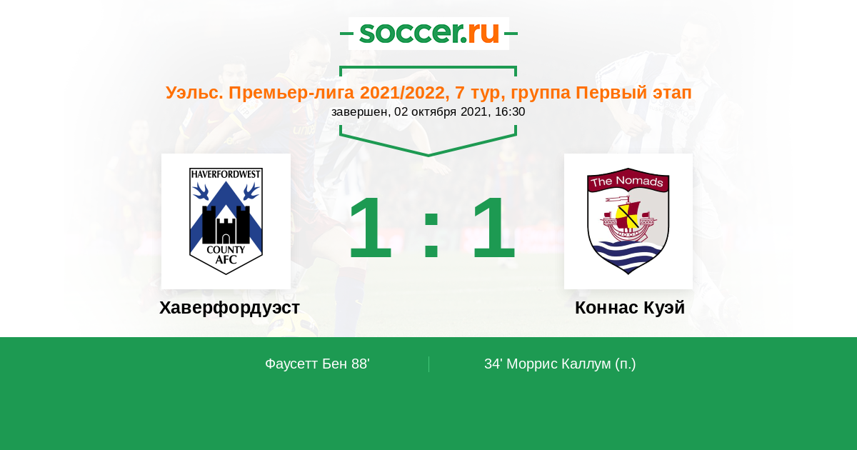 34' (0:1) Моррис Каллум