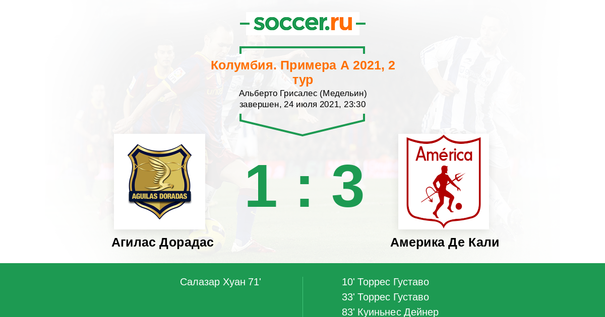 33' (0:2) Торрес Густаво (7) (Лукуми Стивен (21))