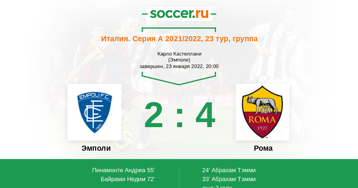 55' (1:4) Пинамонти Андреа (99) (Бандинелли Филиппо (25))