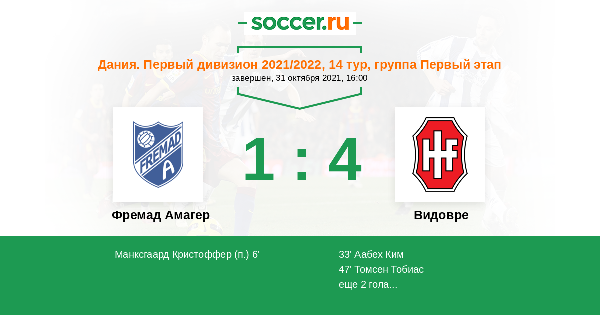 6' (1:0) Манксгаард Кристоффер (9)
