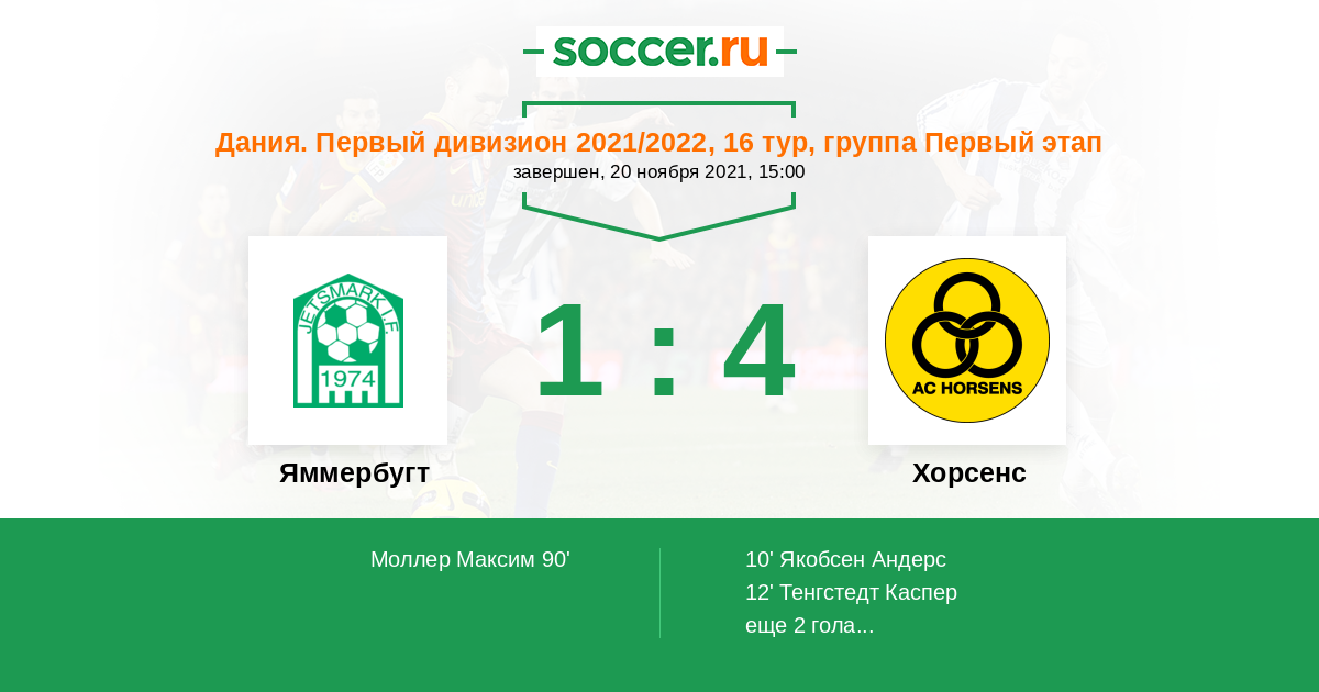 10' (0:1) Якобсен Андерс (9) (Сантос Томас (18))
