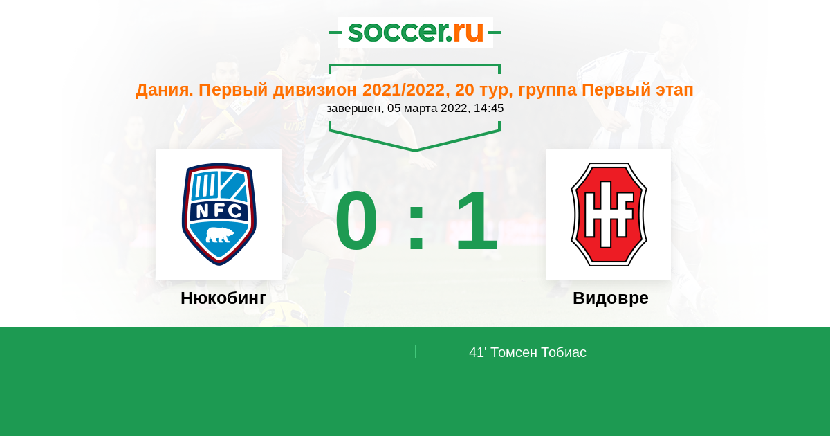 41' (0:1) Томсен Тобиас (77) (Карлсен Фредерик (28))
