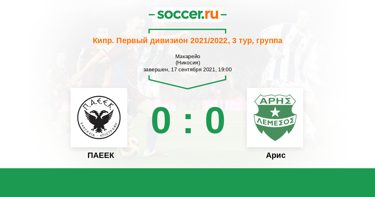 Запасные: 1 Панайоту Панайотис, 33 Чосич Урош (с 90+4'), 3 Хаджиконстантис Лефферис, 2 Маседо Фелипе, 19 Неофуту Андреас, 16 Аристотелус Хараламбос (с 46'), 5 Карлос Эдуардо, 21 Янсен Кевин (с 77'), 18 Комодикис Андреас, 19 Неофитоу Андреас, 17 Бабич Матко (с 63'), 14 Эно Льюис (с 63')