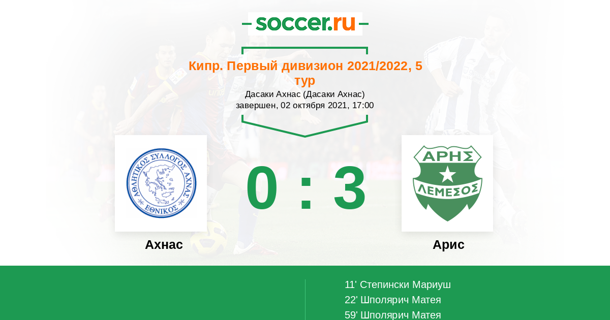 Запасные: 13 Делмиро (с 41'), 80 Шави Уоррен (с 64'), 9 Сикорски Даниэль (с 78'), 19 Фрагкоу Андреас (с 78'), 3 Лопес Нуно, 8 Браун Морган, 14 Кристис Андреу, 24 Элефтериу Антонис, 70 Папастиляну Михалис, 75 Маттэу Николас, 89 Иосифидис Теодорос