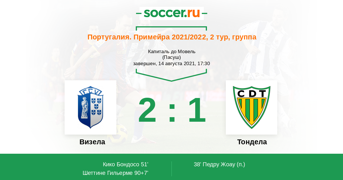 38' (0:1) Педру Жоау (8)