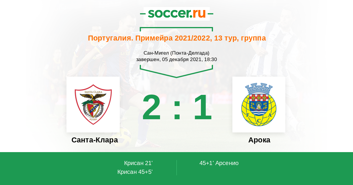 45+1' (1:1) Арсенио (8) (Силва Леандру (21))
