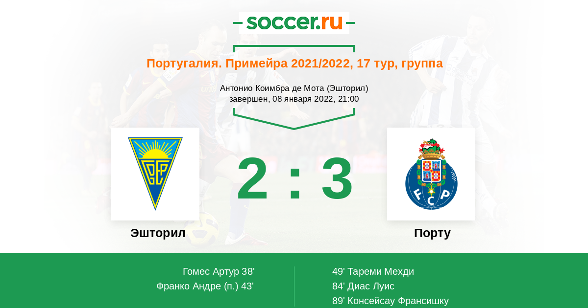 89' (2:3) Консейсау Франсишку (10) (Диас Луис (7))