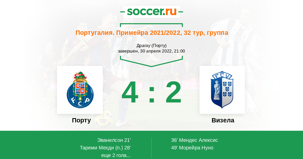 49' (2:2) Морейра Нуно (79) (Игор Жулиао (14))