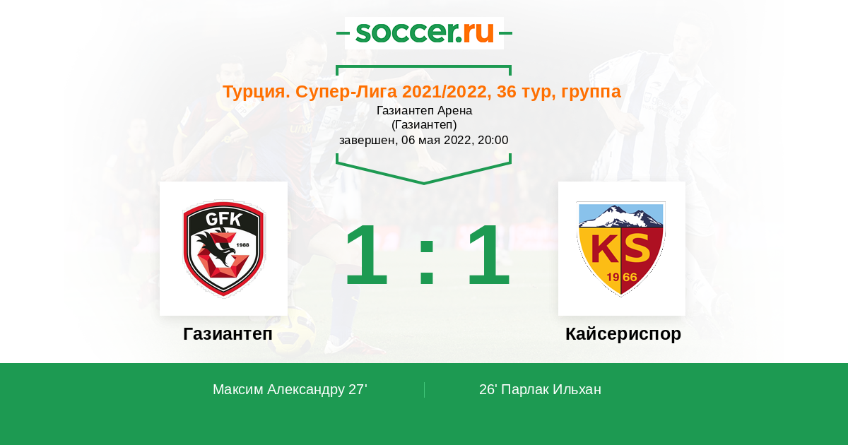 26' (0:1) Парлак Ильхан (23) (Акдаг Ибрагим (24))