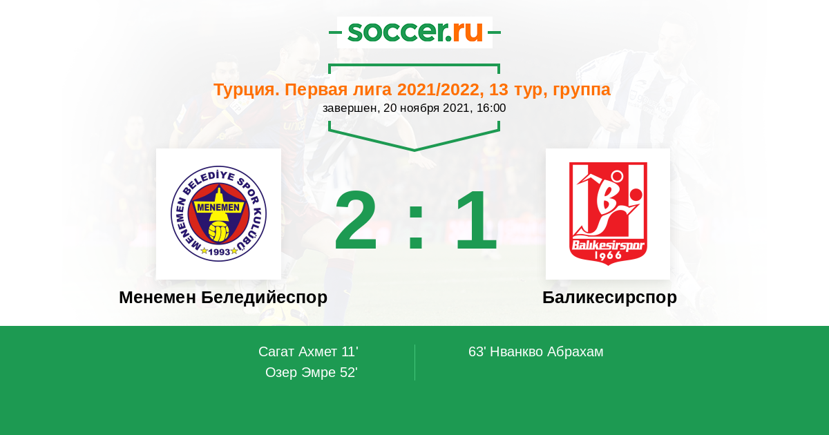 52' (2:0) Озер Эмре (24) (Рашид Ибрахим (61))